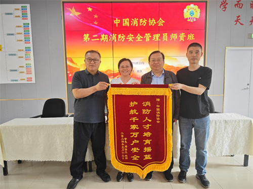 5月16日,中國消防協(xié)會(huì )收到了一份特別的禮物,第二期消防安全管理員培訓班學(xué)員代表鄧淦元贈送了一面寫(xiě)有“消防人才培育搖籃,護航千家萬(wàn)戶(hù)安全”的錦旗。