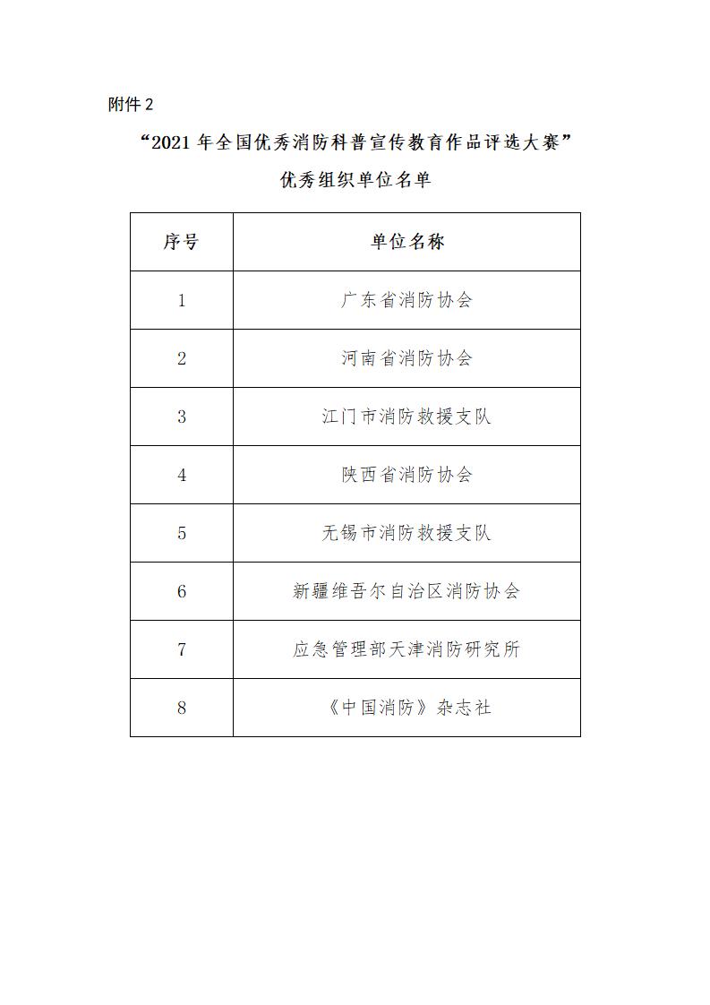2. “2021年全國優(yōu)秀消防科普宣傳教育作品評選大賽”優(yōu)秀組織單位名單